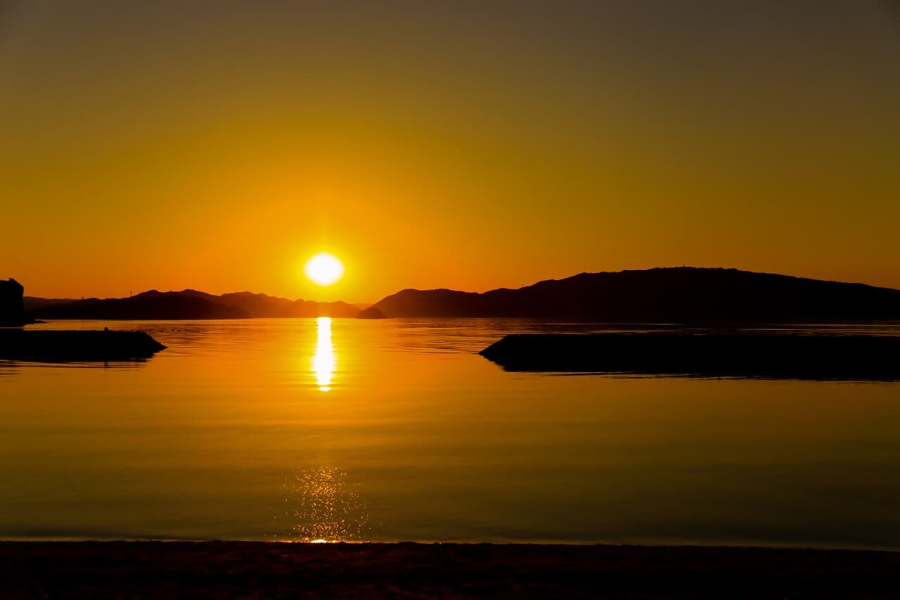 多島美の海景を眺めながら、茜色に染まる空と海を優雅に楽しめます。